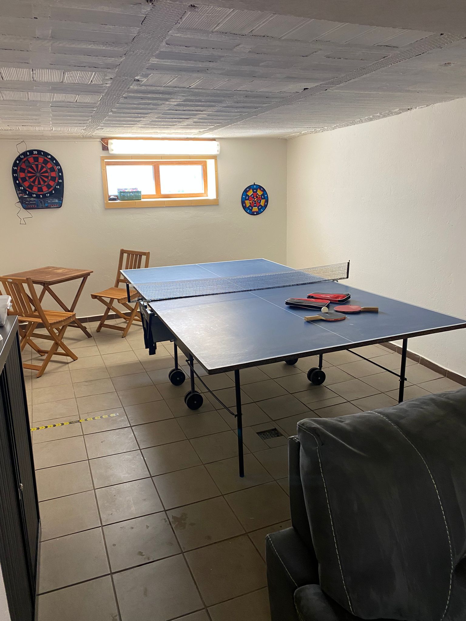 Ve všech částech domu jsou k dispozici dostatečné úložné prostory. Ve sklepní části objektu se nachází herna vybavená šipkami, herní konzolí a stolním tenisem.